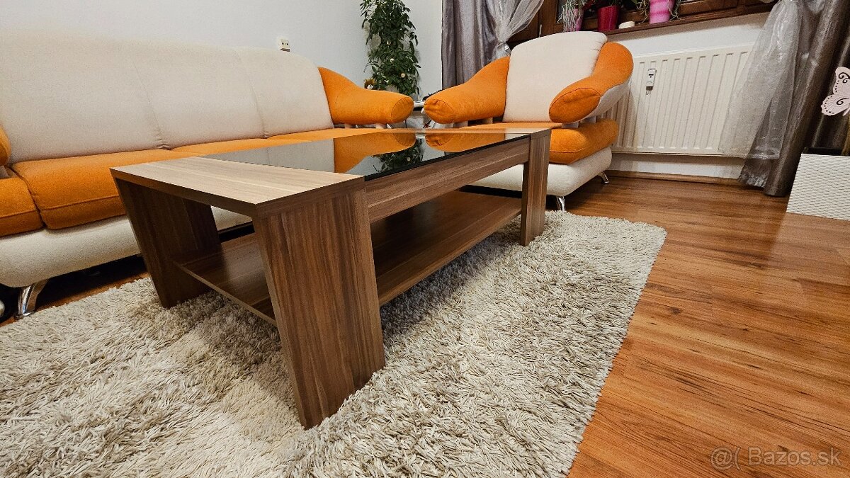 Predám konferenčný stôl do obývačky s čiernym nepriehľadným sklom a celopodlažnou spodnou policou