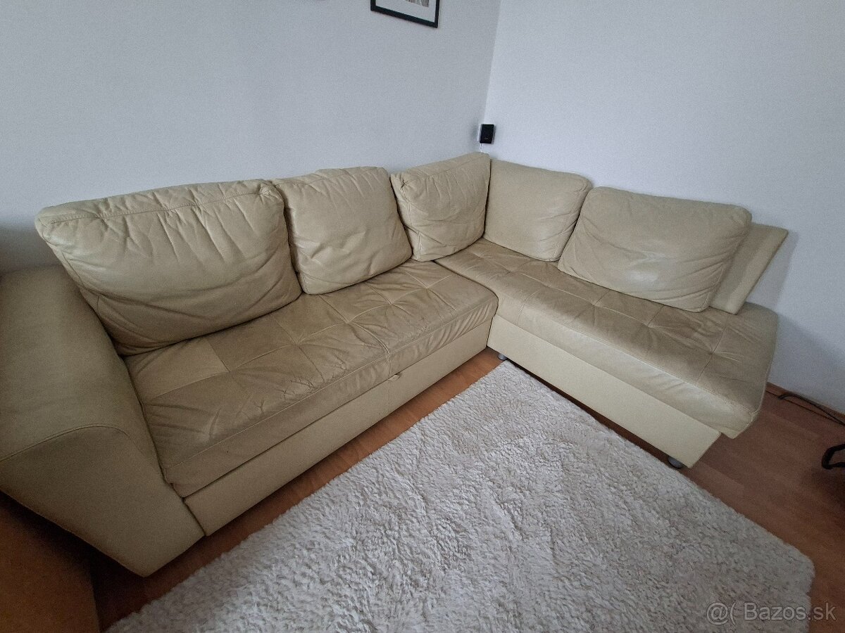 Predám koženú rozkladaciu rohovú sedačku s rozmerom 2,5m x 1,8m. Sedačka je pohodlná, má rozklad na spanie. Vhodná do bytu alebo na chalupu. Je používanámá viditeľné známky používania (len na sedacej časti), ale je stále funkčná a pohodlná.