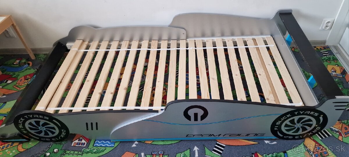 Predam detsku postel v tvare auta. Na rozmer matracu 190x90, cice sa tam v pohode zmestite dvaja pri citani rozpravky, alebo sa v nej vyspi aj stredne velky dospelak 😉. Postel uz ma drobne znamky opotrebenia uzivanim dietata. Na jednom kraji drevotriesky je nalepana gumena ochrana, aby postel nemala ostre hrany drevotriesky a vase dieta si nerozbilo hlavu o kraj postele. Cena s rostom 50e bez rostu 40e. Iba osobny odber Zilina-Solinky. V pripade velkeho zaujmu vyssia ponuka vyhrava. Nerezervujem! Kto prvy pride ten berie. Idealne ju zobrat v celku. Ale kludne si ju mozete na chodbe aj rozobrat.