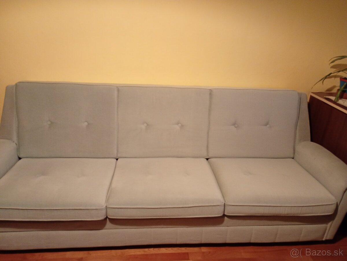 Predám starší, ale funkčný rozkladací gauč svetlomodrej farby, dĺžka 230cm, šírka 90cm, po rozložení 200x130cm. Vlastný odvoz.
