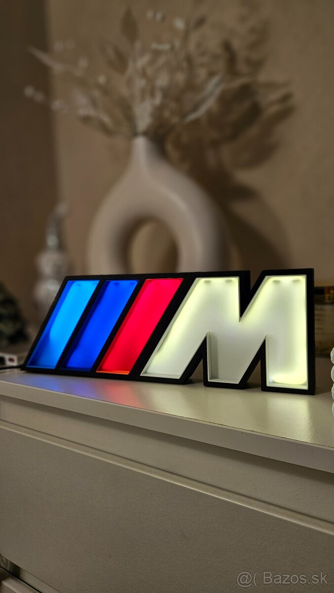 Predám dizajnovú BMW M LED lampu s ikonickými M farbami (modrá, tmavomodrá, červená). Moderný a elegantný doplnok do interiéru – ideálny do pracovne, obývačky, garáže alebo showroomu.