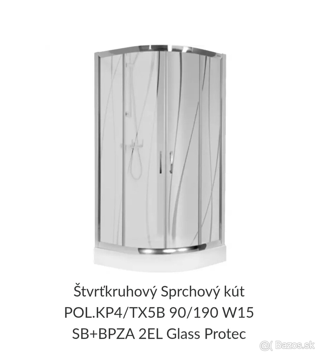 Štvrťkruhový Sprchový kút s vaničkou, POL.KP4/TX5B 90/190 W15 SB+BPZA 2EL Glass Protec