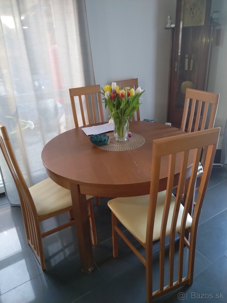 Lacno predám IKEA stôl s 5 stolickami