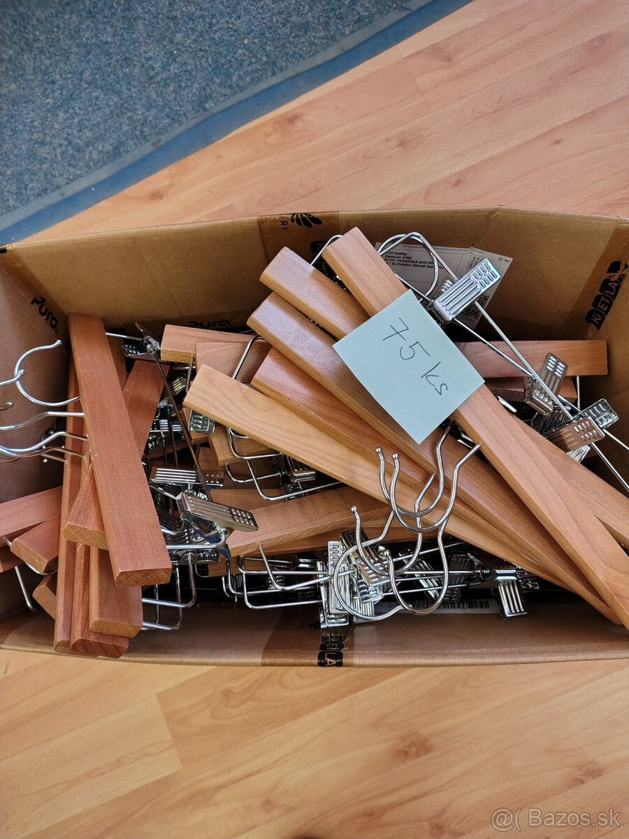 Ponúkam detské drevené vešiaky so stipcami. Mám 75 kusov. Všetky sú v super stave. Používané v obchode s detských sortimentom. Štipce na vešiaku sú zvnútra potiahnuté silikónom pre ochranu odevu. Dajú sa posúvať, sami si nastavíte šírku stipcov podľa potreby. Cena za kus je 1€. Pri odbere všetkých kusov je cena za kus 0,8€.