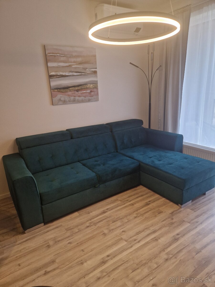 Predám novú sedačku, smaragdovo-zelenú. Rozkladacia s úložným priestorom, dĺžka 262cm.