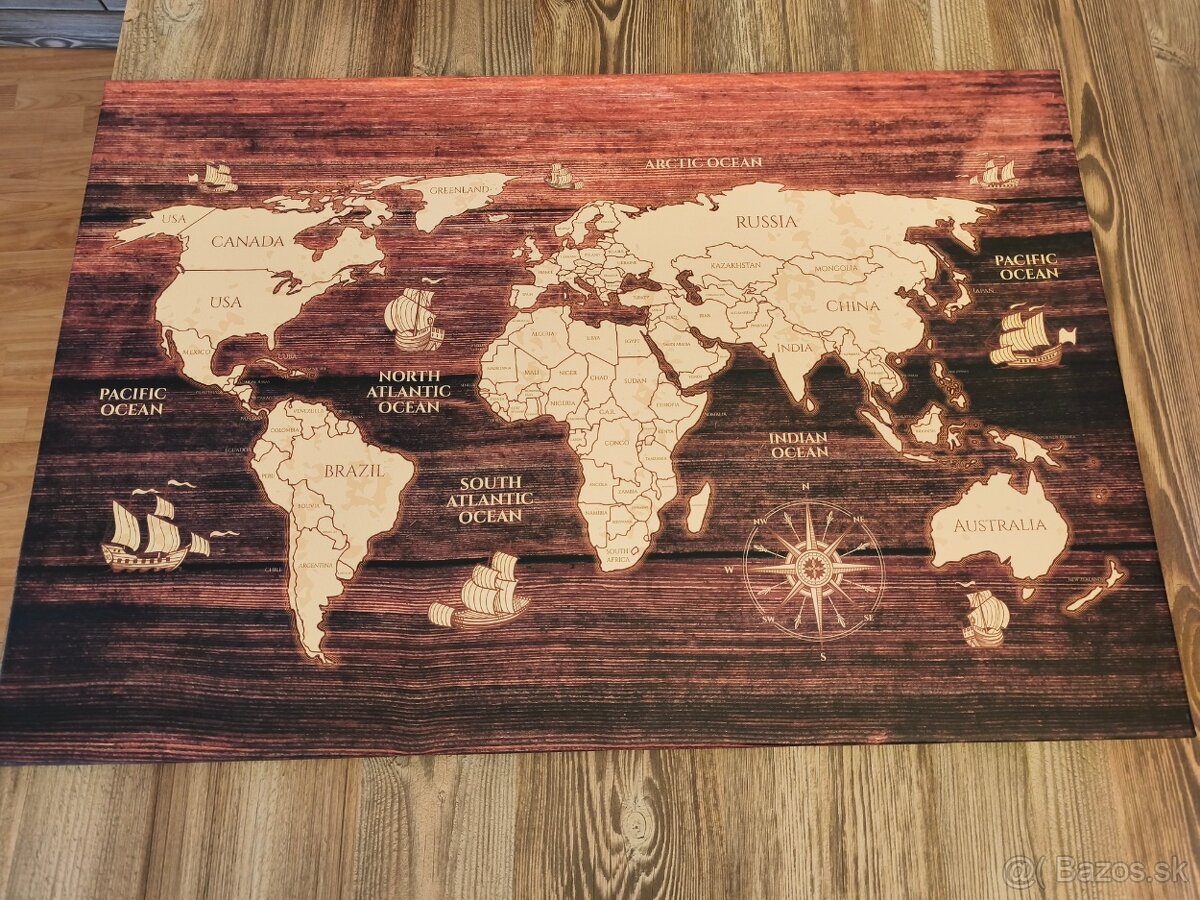 Predám obraz - mapu sveta vo výbornom stave. Materiál - plátno. Rozmery: 60 x 90 cm.