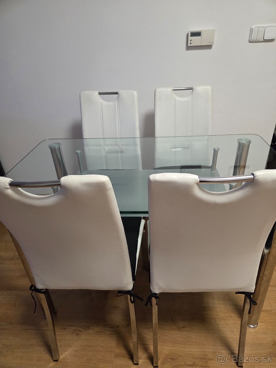 Predám set sklenený stôl + 4 stoličky v zachovalom stave, viac inf. v správe. Dohoda možná