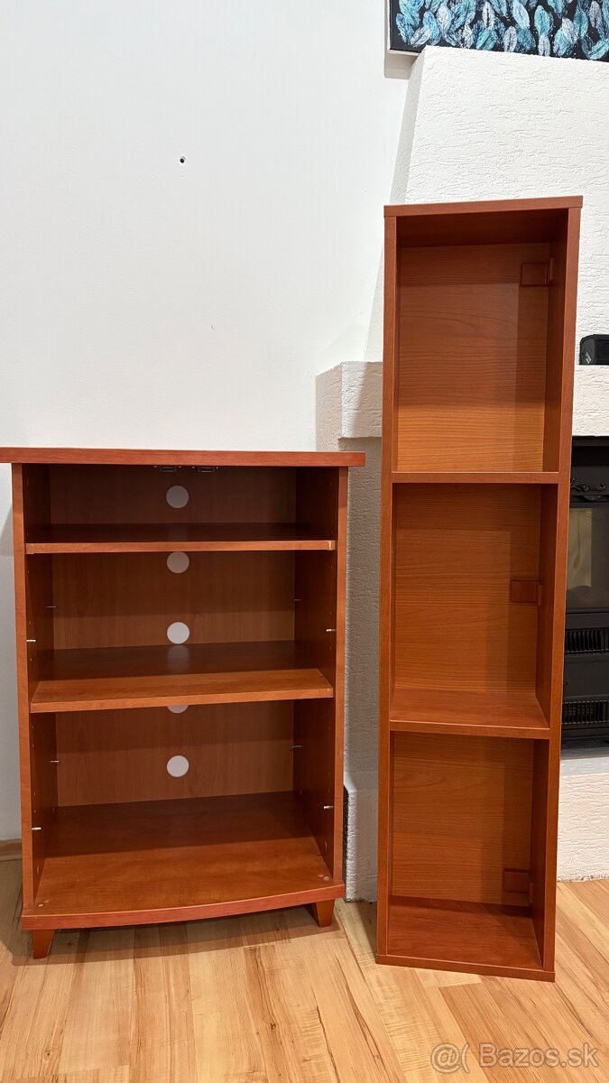 Predám dve kvalitné drevené poličky v peknom čerešňovom odtieni. Nábytok je pevný a stabilný. Poličky sú vo veľmi dobrom stave, boli používané šetrne a stále pôsobia pekne a reprezentatívne.