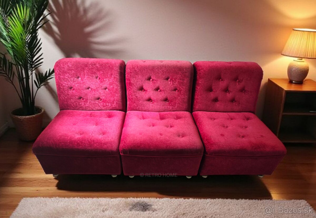 Predám 3 retro kreslá, ktoré sa dajú používať samostatne alebo spolu ako sedačka, sú určené na renováciu podľa vlastných predstáv, výrobca Tatra nábytok Pravenec, cena 25€ za kus.
