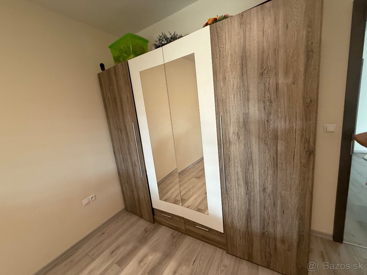 Šatníková skriňa s posuvnými dverami - [11.3. 2026]Predám priestrannú šatníkovú skriňu s posuvnými dverami a veľkým zrkadlom používanú cca. 1 rok.