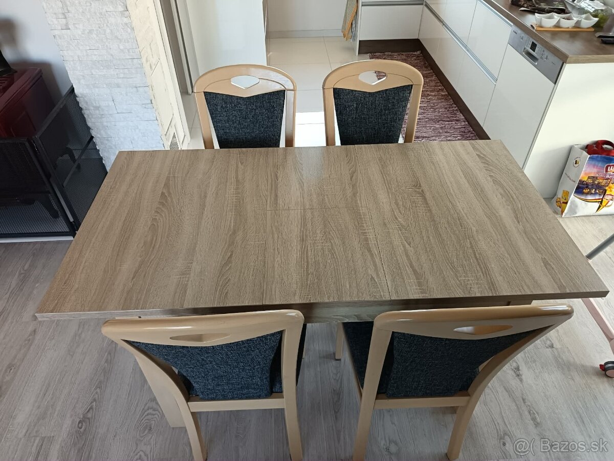 Predám jedálenský stôl so stolickami vo veľmi dobrom stave.Stol je rozkladací 130-160/80 .Stoličky pevné čisté ...potrebujem väčší stôl preto predávame