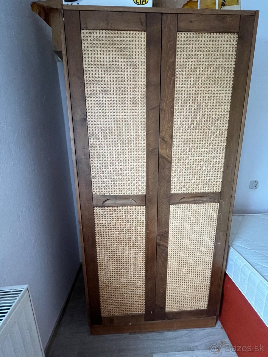 Predám sektorovú zostavu v kombinácii tmavohnedá drevotrieska a svetlá ratanová výplň ( aj jednotlivo) - 2 skrine s poličkou a tyčou na vešanie (160cm x 80cm x 58cm), 2 skrinky s dvierkami a policami (80 cm x 80 cm x 38cm),2 otvorené poličky - šírka (80 cm) a výška taká, aby sa dali ukladať aj na seba a tvoriť zostavy. Na fotke zostavené do výšky, ale možnosť rozostaviť aj do šírky.