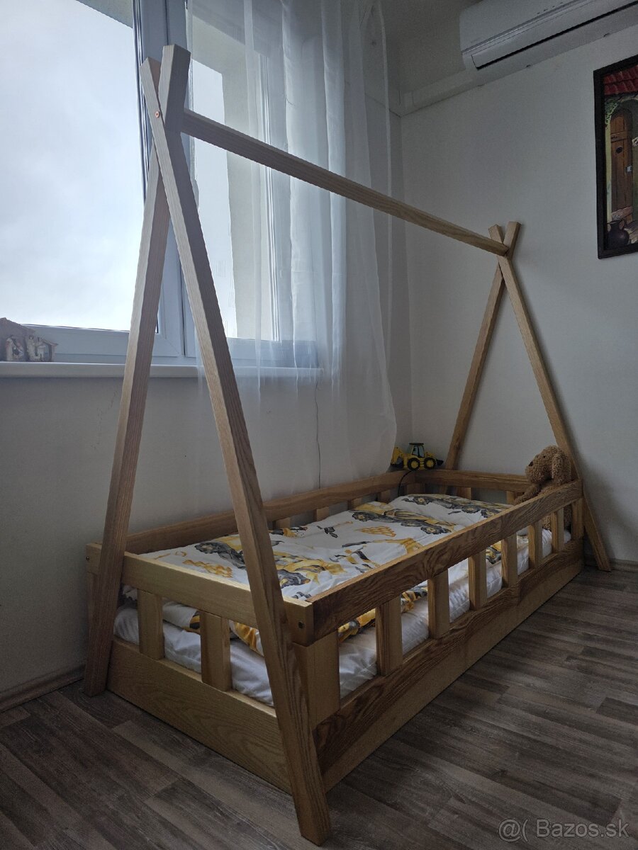 detská posteľ, posteľ domček, teepee posteľ, stan posteľ, masívna posteľ, jaseň, detská posteľ z masívu, handmade posteľ, stolárska posteľ, Montessori posteľ