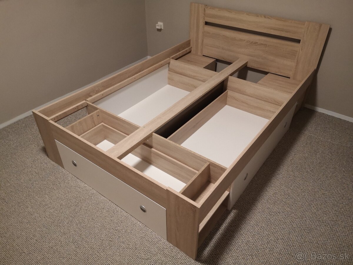 Postel 140x200 cm - [14.3. 2026]Postel vo výbornom stave, farba dub sonoma a biela, penový matrac ako darček