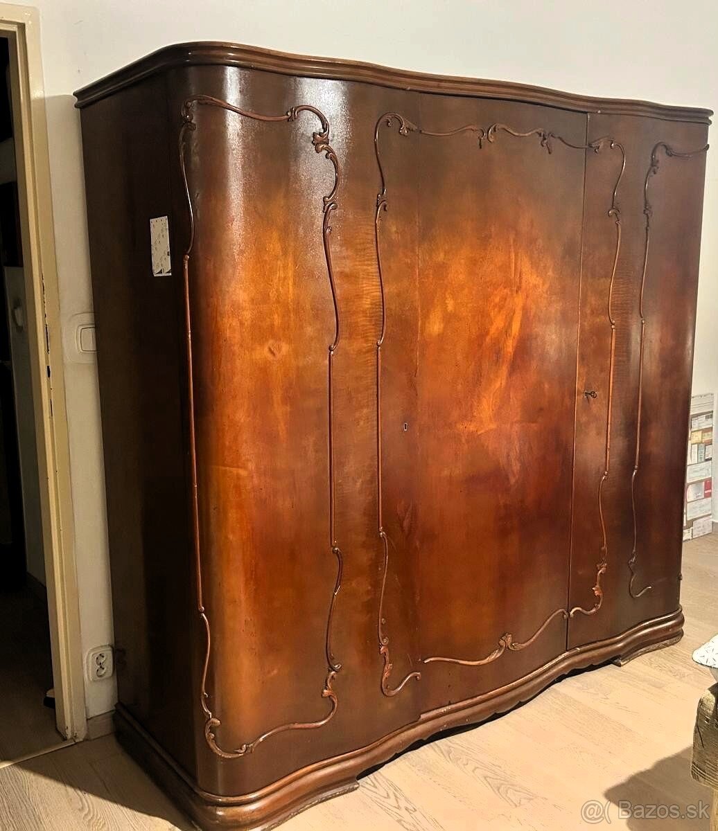starožitná drevená komoda z masívu - [18.2. 2026]Krásna starožitná drevená komoda, ktorá vyniká svojou bohatou a detailnou hornou rezbou. Jedná sa o pevný, kvalitný kus nábytku z masívneho dreva s pôsobivou kresbou, ideálny pre milovníkov historického a rustikálneho štýlu.