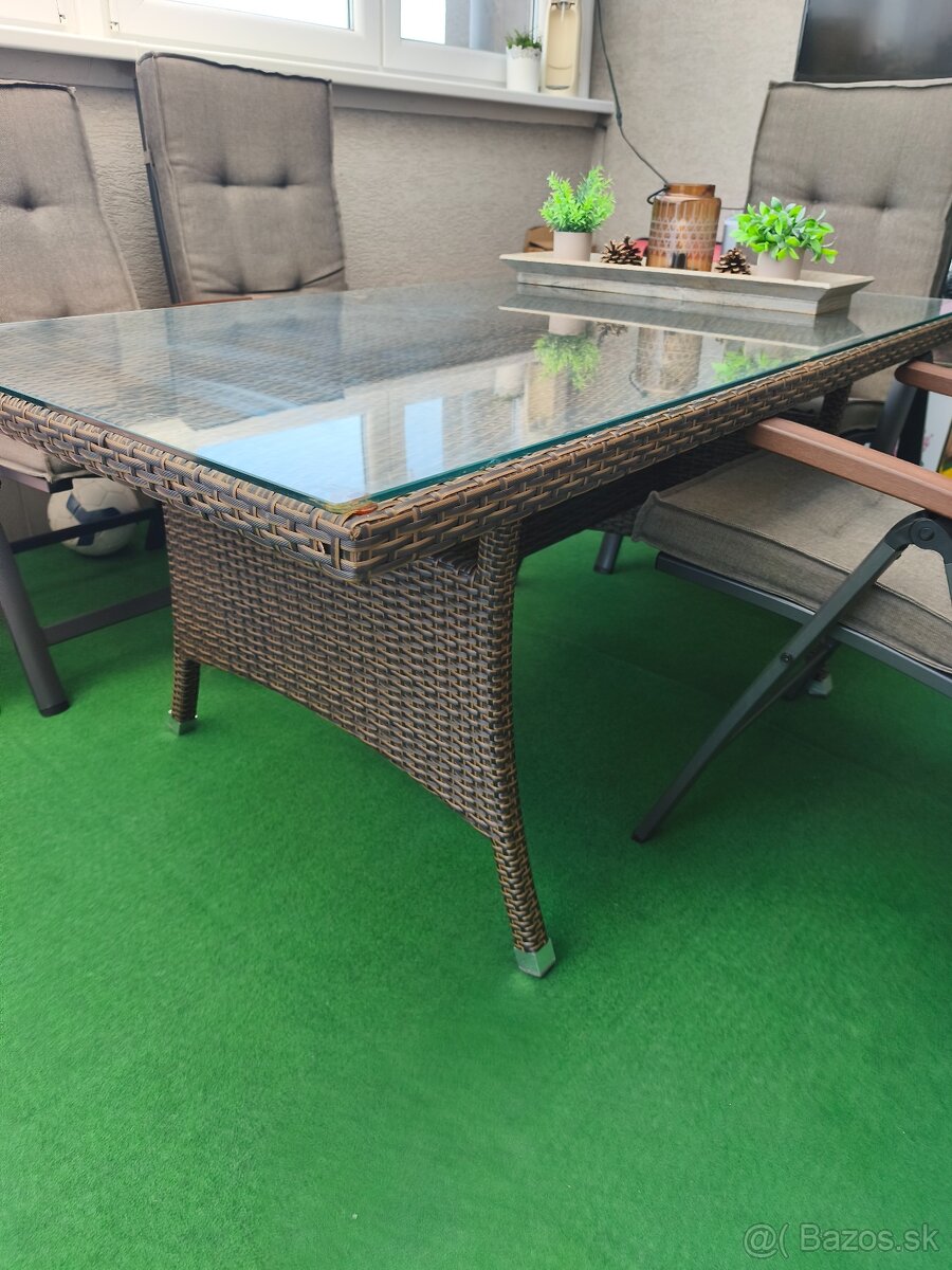 Ratanovy stôl + sklo - [24.1. 2026]Predám krásny ratanovy stôl so sklom,vo veľmi dobrom stave. Výška 40 cm, šírka cca 59cm, dĺžka cca 118cm.