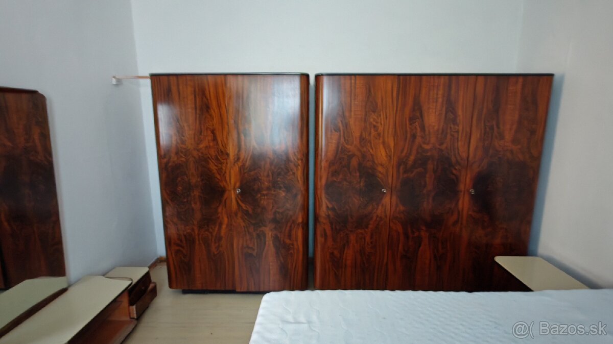 Predám staré šatníkové skrine z 50. rokov vyrobené z dreva s výraznou kresbou orechovej dyhy. Sú bez akéhokoľvek poškodenia, jedna je samostatná a ďalšia je ako dvojskriňa/nedá sa rozdeliť / Rozmery samostatnej : Š 120cm,V 180 , H 60cm,