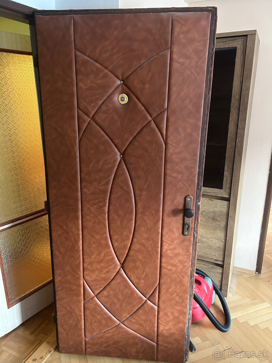 Predám vchodové dvere, pravé, očalúnené z obidvoch strán. Z jednej strany guľa, z druhej kľučka. Miera 80cm.