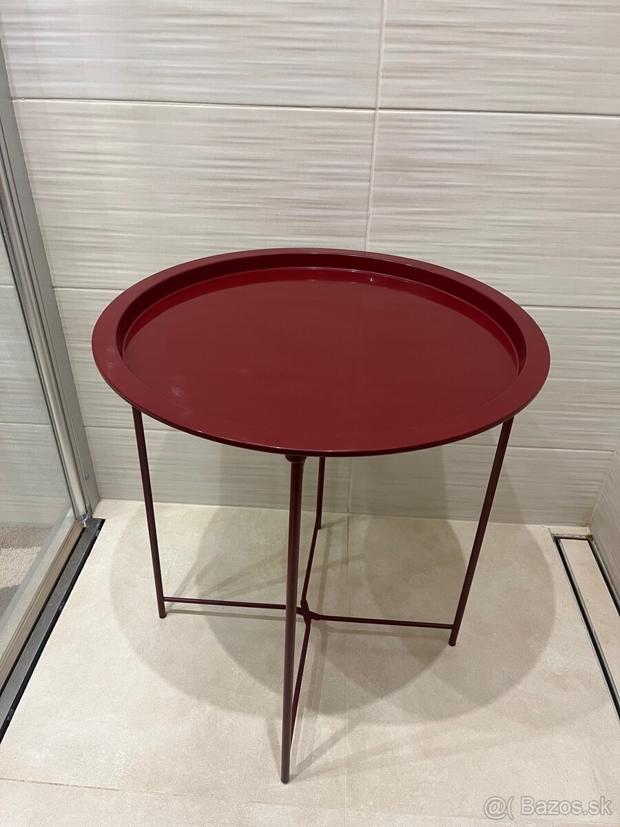 Predám moderný okrúhly stolík v červenej farbe. Stolík je kovový, stabilný a vo veľmi dobrom stave. Vhodný ako odkladací stolík do obývačky, na balkón alebo terasu.
