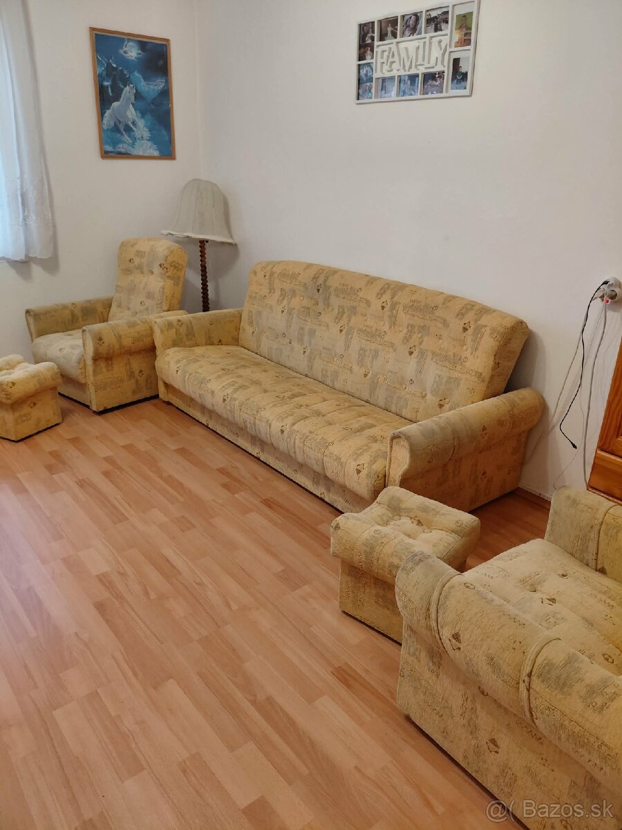 Predam sedaciu supravu 3sedačka rozkladacia+ulozny priestor,2x fotelka ,2x taburetka s uloznym priestorom, pravidelne profesionalne tepovana,domacnost bez zvieratka ,nefajciarska,nutne zabezpecit vlastny odvoz