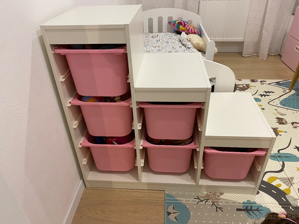 Predám úložný nábytok Trofast, vrátane boxov, bez poškodení. Rozmery 99x44x94 cm