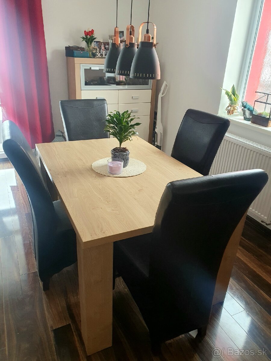 Predam velmi zachovali jedálenský stol rozmer 145cm na 95cm kto chce stoličky pridam gratis ku stolu maju znamky pouzivania
