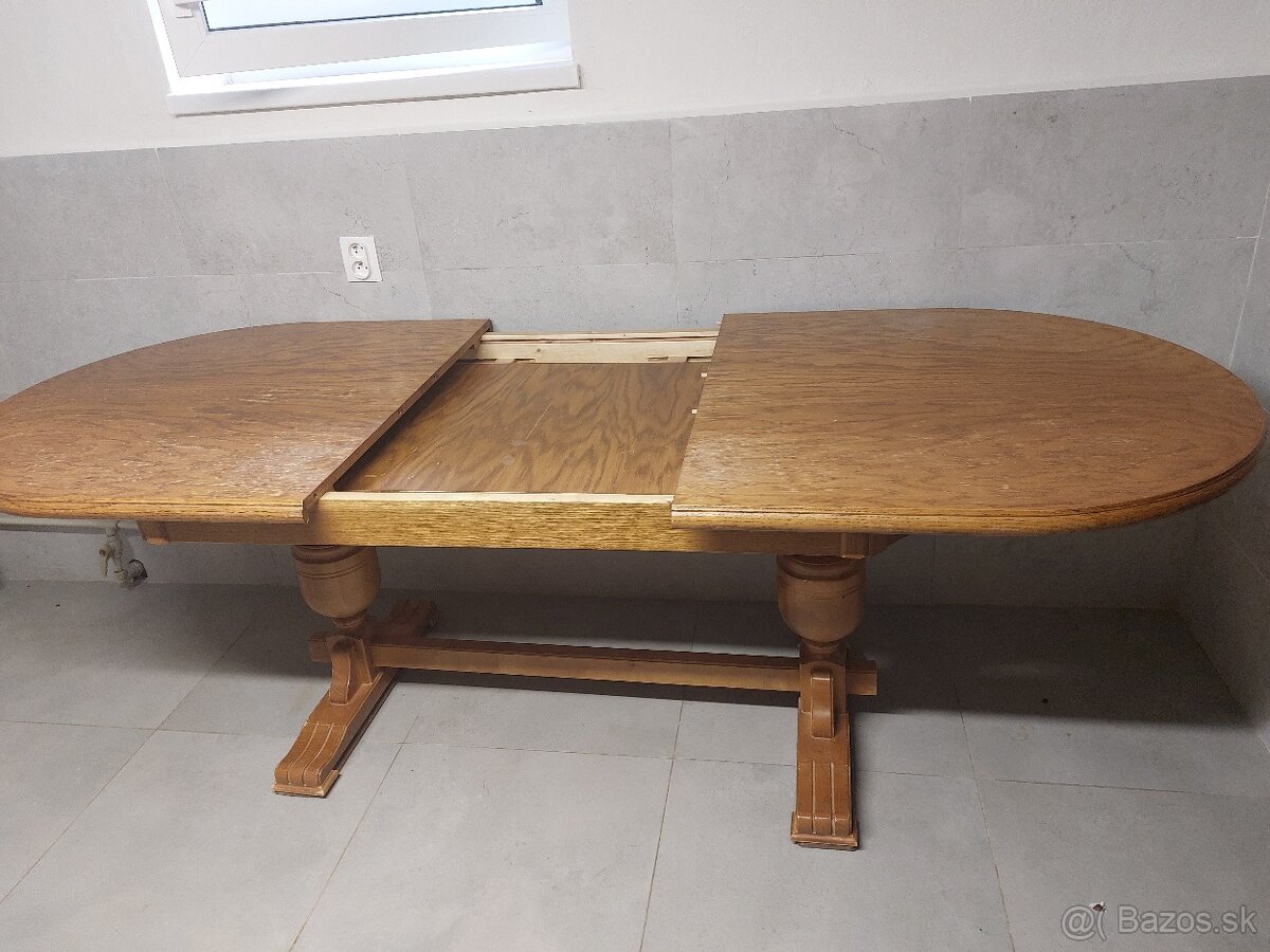 Predám veĺký drevený rozkladací jedálensky stól, dĺžka 2m, po rozložení 2,5m