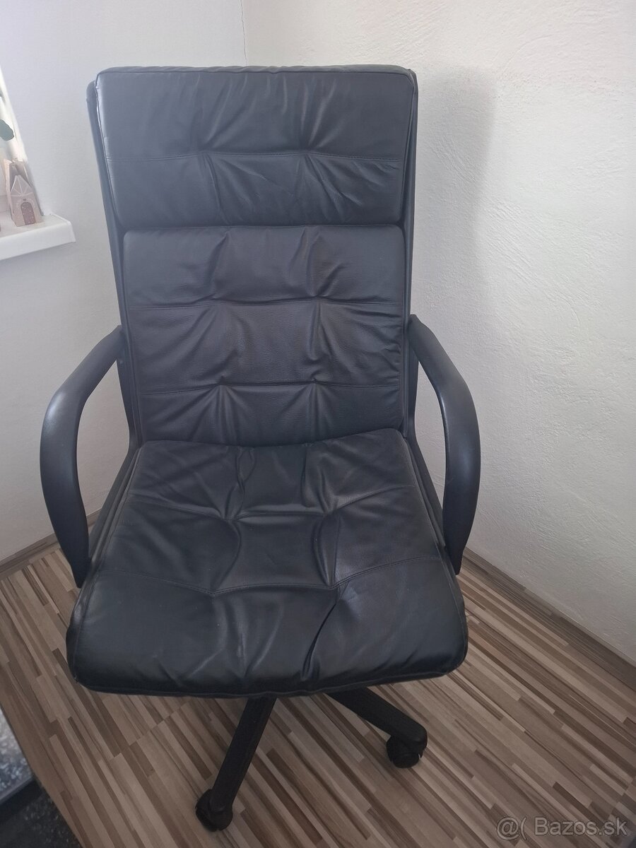 Predám veľmi malo používanú kancelársku stoličku otočnu v kozí. Koža nie je osuchana ani popraskana.