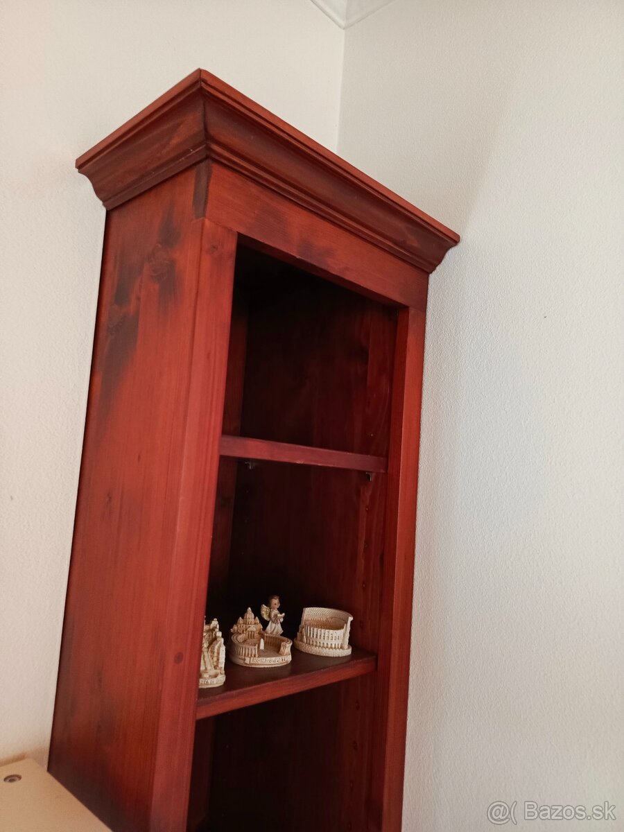 1.Rohová skriňa s poličkami aj vešiakom, 2.otvorený regál - nastaviteľná šírka,