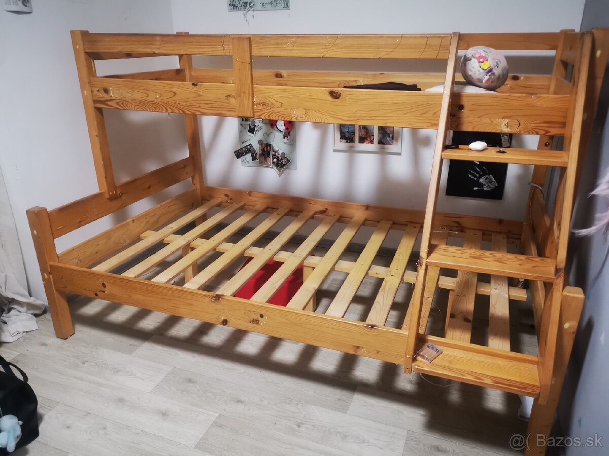 Predám poschodovou posteľ.. Spodná posteľ je 120x200 a vrchná 80x200.