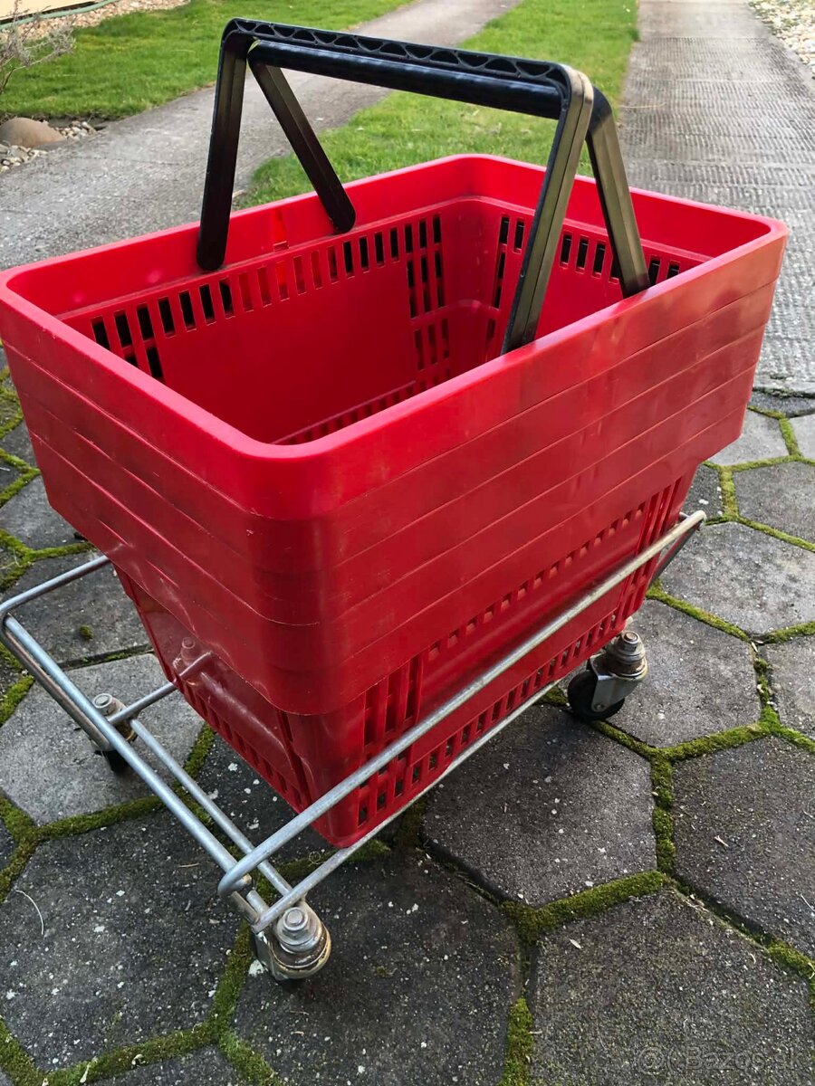 Predám Nákupný košík 8 ks + stojan na kolieskach ako nove.Cena 30€