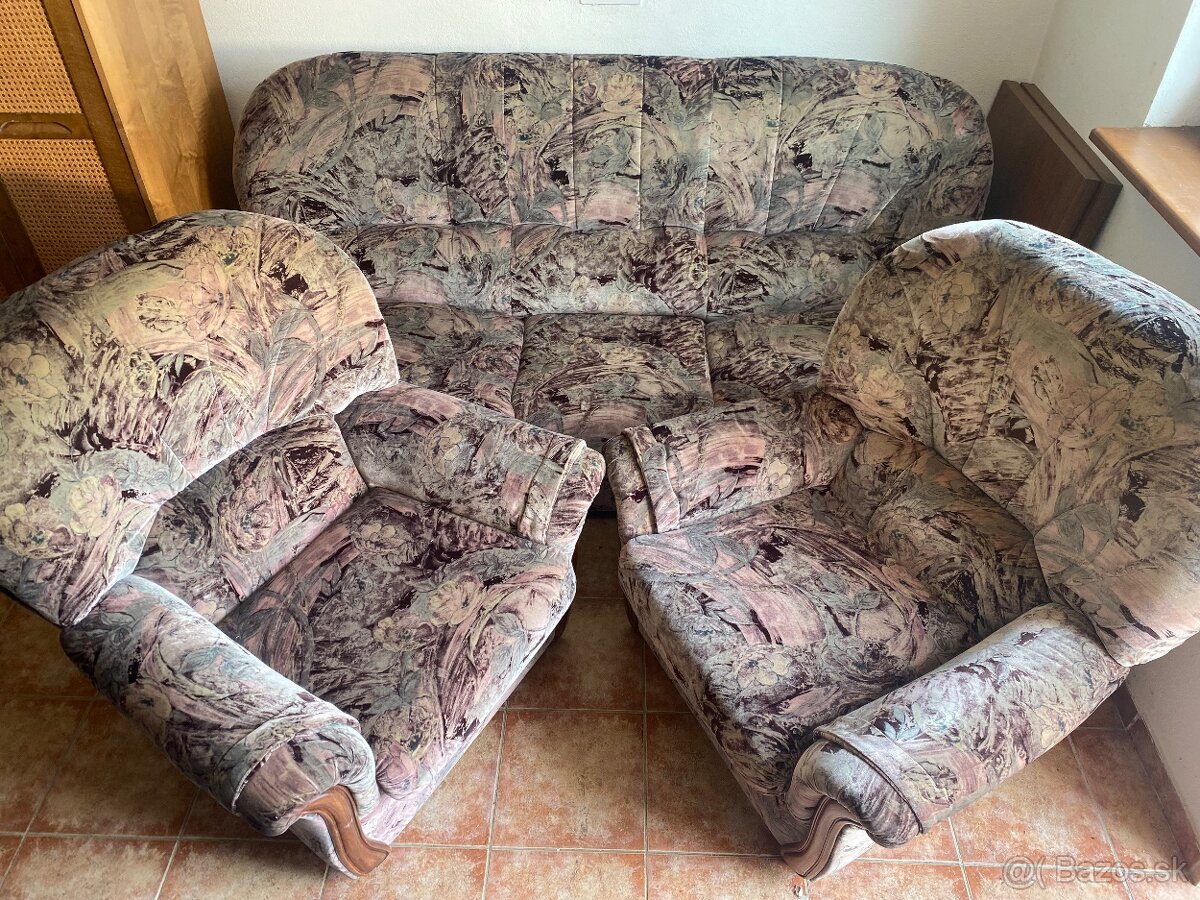 Predam tuto sedaciu supravu s dvoma kreslami v krasnom stave. Gauc mozne rozlozit na plnohodnotnu postel.