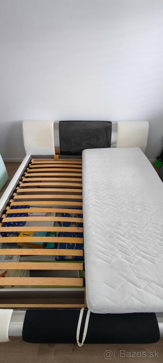 Z čela postele je koženka poolupovaná viď foto. Rošty sú bez poškodenia a matrace sú mäkšie. Len osobný odber.
