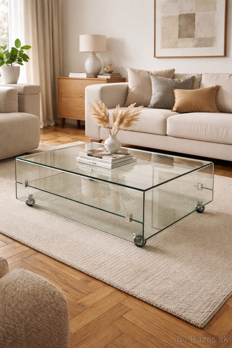 Predáme štýlový a nadčasový sklenený masívny stôl, dá sa rozložiť na dve časti a tak preniesť plus je spodná časť na kolieska. Kolieska sú všetky funkčné. Na povrchu sú nejaké škrabance, ale žiadne veľké ryhy. Stále v ukážkovom stave. Pôvodná cena bola 250€. Je to masívnejší kúsok. Osobný odber Žilina - Moyzesova ul.