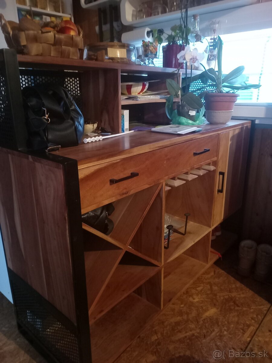 Predám kvalitný a stabilný bar z masívneho dreva v kombinácii s kovovou konštrukciou v antracitovej farbe. Bar má moderný vzhľad + dohoda.cena 400eu +domluva
