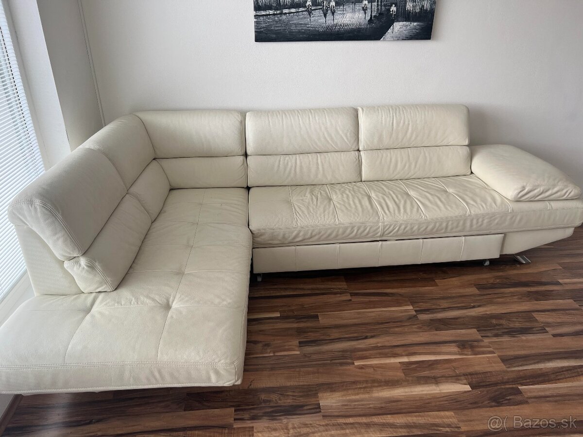 Predám modernú, koženú sedaciu súpravu v bielej farbe s úložným priestorom. Pravá koža. Sú na nej mierne známky používania (viď. foto). Osobný odber CHorvátsky Grob