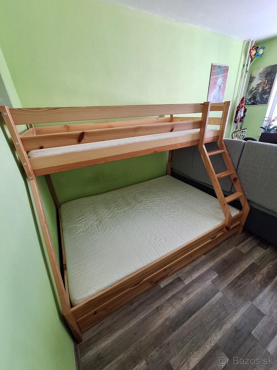 Detská poschodová posteľ, možno použiť aj ako 2 jednolôžka - [16.3. 2026]Predám detskú poschodovú posteľ vo vybornom stave, ktorú možno použiť aj ako 2 samostatné jednolôžka, ako je aj na obrazku. Predám komplet s roštami a matracmi (rozmer 70x190) za 250€.