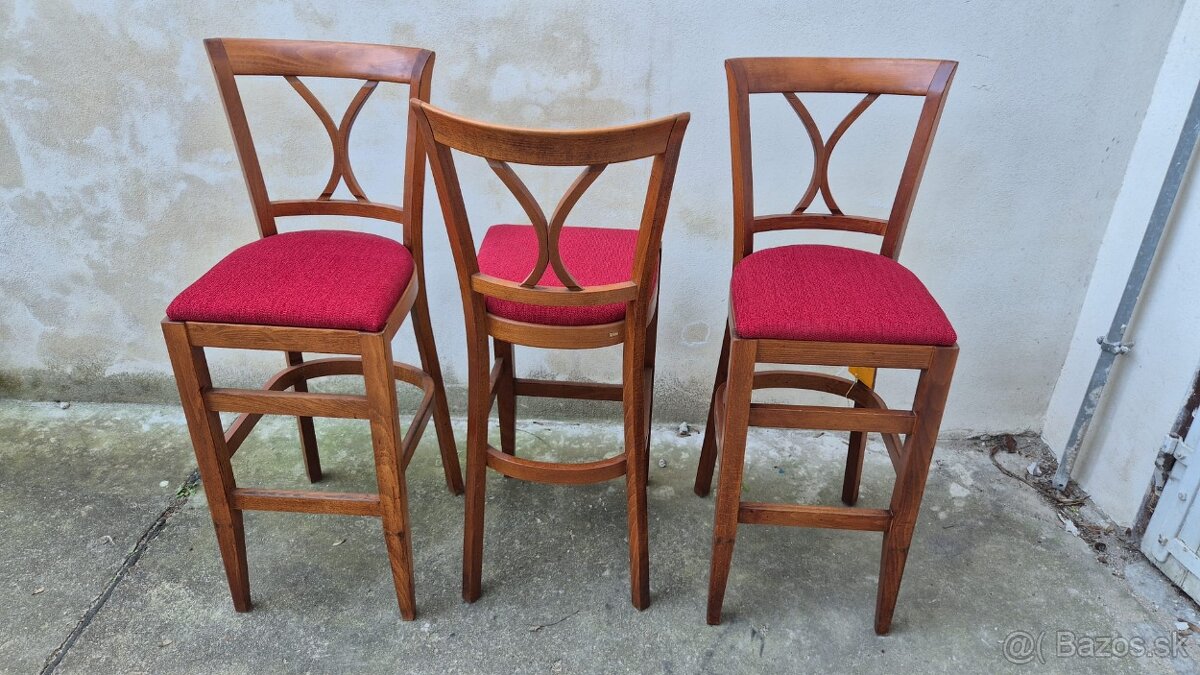 Brno - Predám reštauračné barové (krčmové, kaviarenské) používané stoličky TON s novým polstrováním (Thonet). K dispozícii je celkom 3 kusov, uvedená cena je za jeden kus, predaj možný aj po kusoch. Barové stoličky (barovky) sú vhodné do gastro prevádzok, reštaurácií či cukrárni. Uplatnenie môžu nájsť tiež v baroch alebo kaviarňach. Sú vhodné aj do jedáleň.