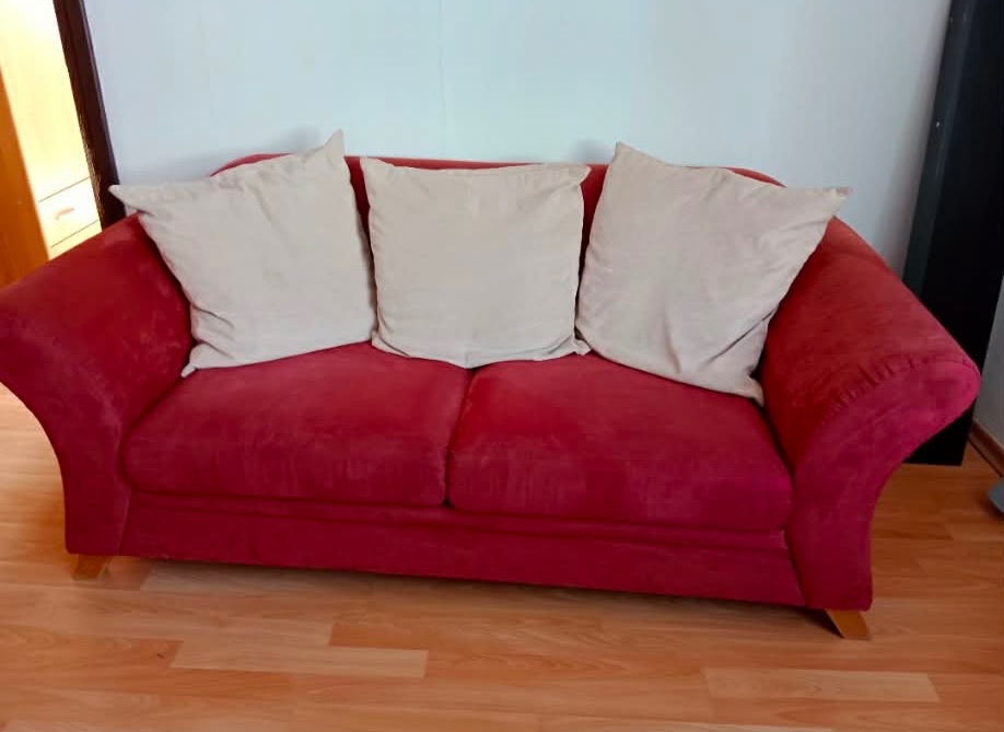 Dvojkreslo pevné, 170 x 85 cm. Vankúše aj sedáky na zips, prateľné.