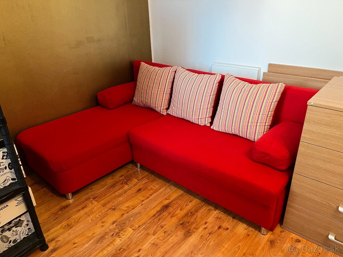Rozkladací - červený L-ko s uložným priestorom