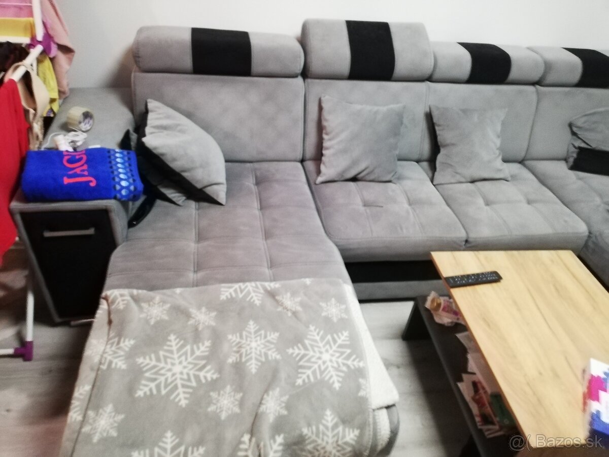 Rohovy gauč - [15.3. 2026]Predám rohový gauč používaný 2 roky.Je ako nový bez známok poškodenia,má nastavyteľné opierky a úložný odkladací priestor,je tu aj spacia plocha.Osobný odber Prakovce.Cena 900€