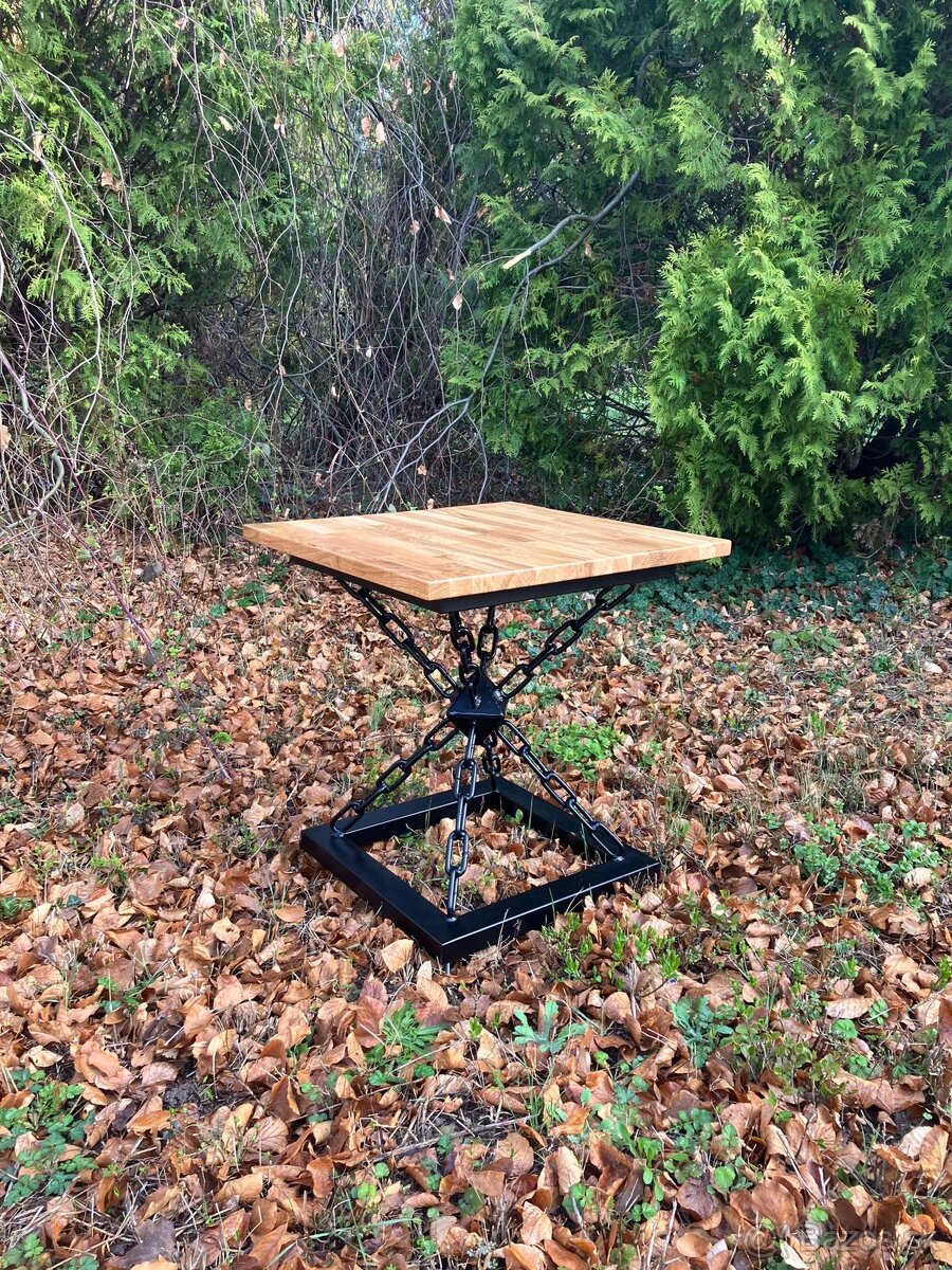 Predám stolík s rozmermi: 63x 63cm a výška cca 66 cm. Stolík ma nastaviteľné nohy. Skladom 3 ks