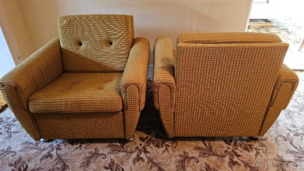 Sedacia súprava - [7.3. 2026]Predám za symbolických 40 € sedaciu súpravu v zachovalom stave. Dve kreslá a rozkladací gauč.