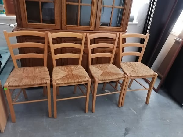 Retro stolicky repasovane - [18.3. 2026]Ponukam krasne retro stolicky, precalunene, prebrusene, osetrene specialnym olejom, pekna kresba dreva. Povodne z polovice 20. storocia.