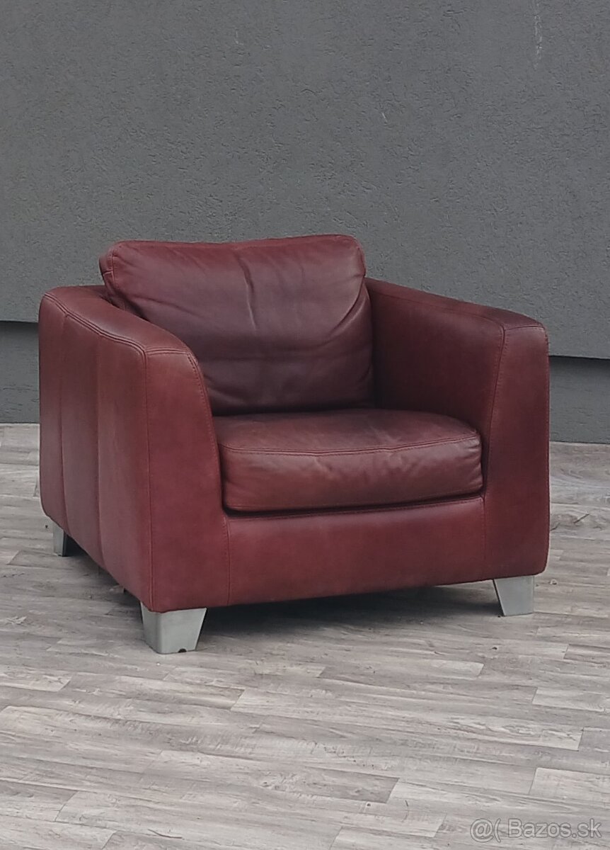 Kreslo kožené bordové.