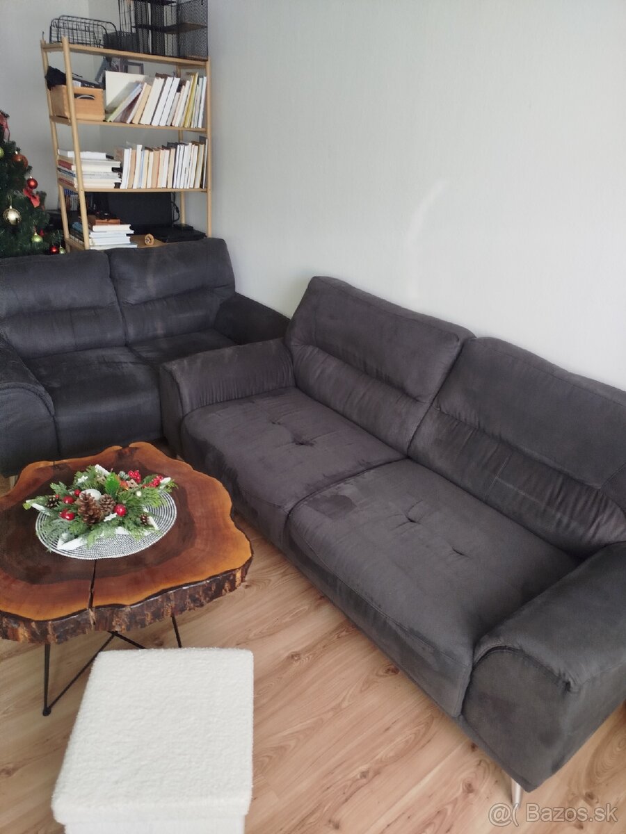 Predáme dvojročnú sedaciu súpravu Livorno, trojsedačka+dvojsedačka v super stave, potrebujeme niečo väčšie. Látka sivá akoby brúsená koža.