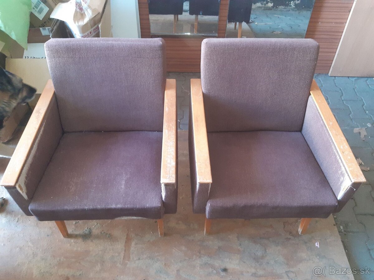 Ponúkam RETRO Kreslá rôzne druhy zelené a červené, á 10€/ks, hnedé á 15€/ks, červené 1ks 10€, ceny vec dohody, inzerát platný do zmazania