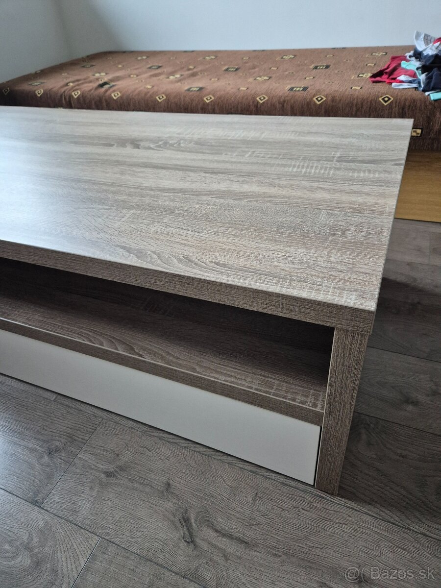 Predám používaný konferenčný stôl. Zachovalý bez väčších známok opotrebenia.rozmer 135x67. Výška 43.5cm. Farba siva sonoma. Otvaraci šuplík. Hrúbka dosky 3.5 cm
