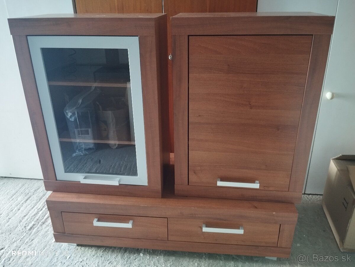 Predám obývaciu stenu, zložená z dvoch závesných skriniek a zo skrinky na televízor.Rozmery sú závesená skrinka š650cm x v900cm c h360cm, spodná skrinka š1300cm x v300cm x h575cm.