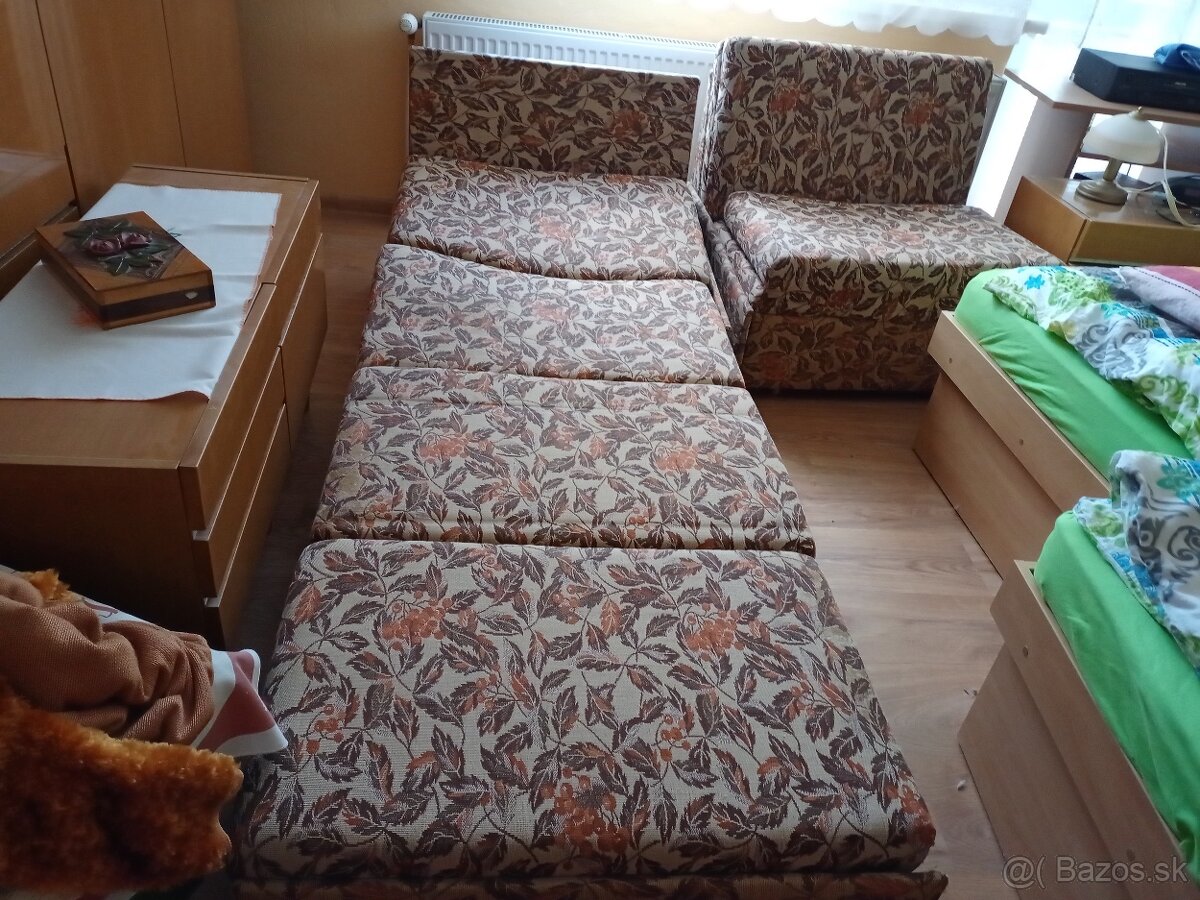 Pekná kvetinová rozťahovacia sedacia súprava a kreslá - [1.3. 2026]Predám peknú secesnú rozťahovaciu kvetinovú sedaciu súpravu. Pozostáva z rozťahovacieho gauča a dvoch kresiel.Sedačka je zánovná.